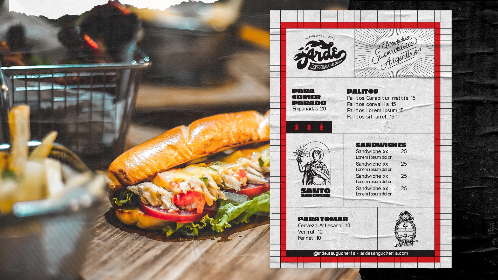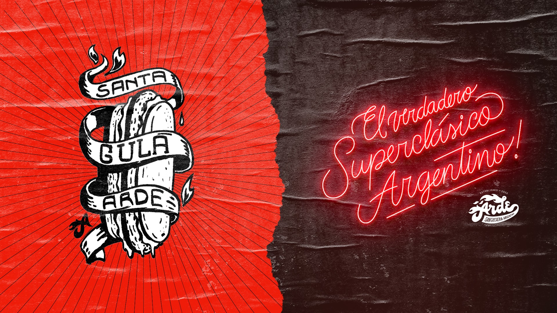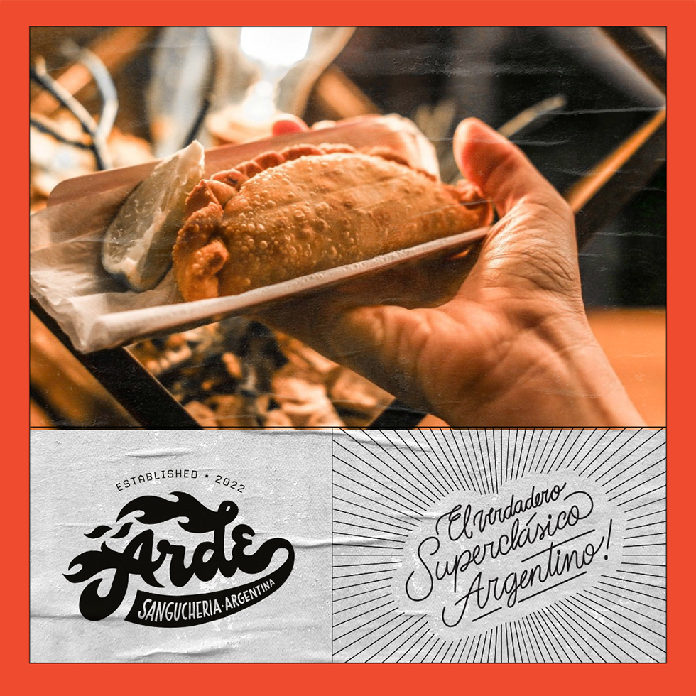 We created the visual identity for Arde, a sandwich shop that offers the flavor and succulence of meat prepared with Parrilla's traditional Argentinian technique. And to harmonize with the preparation of the main ingredient of the menu, we are also inspired by elements of Argentine culture. Everything that is most traditional has been transformed into an identity as democratic as the brand's purpose: to bring the tradition of Parrila Argentina to everyone. The graphic elements propose an immersion in Argentine culture and street food with art.