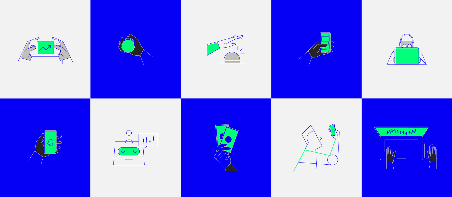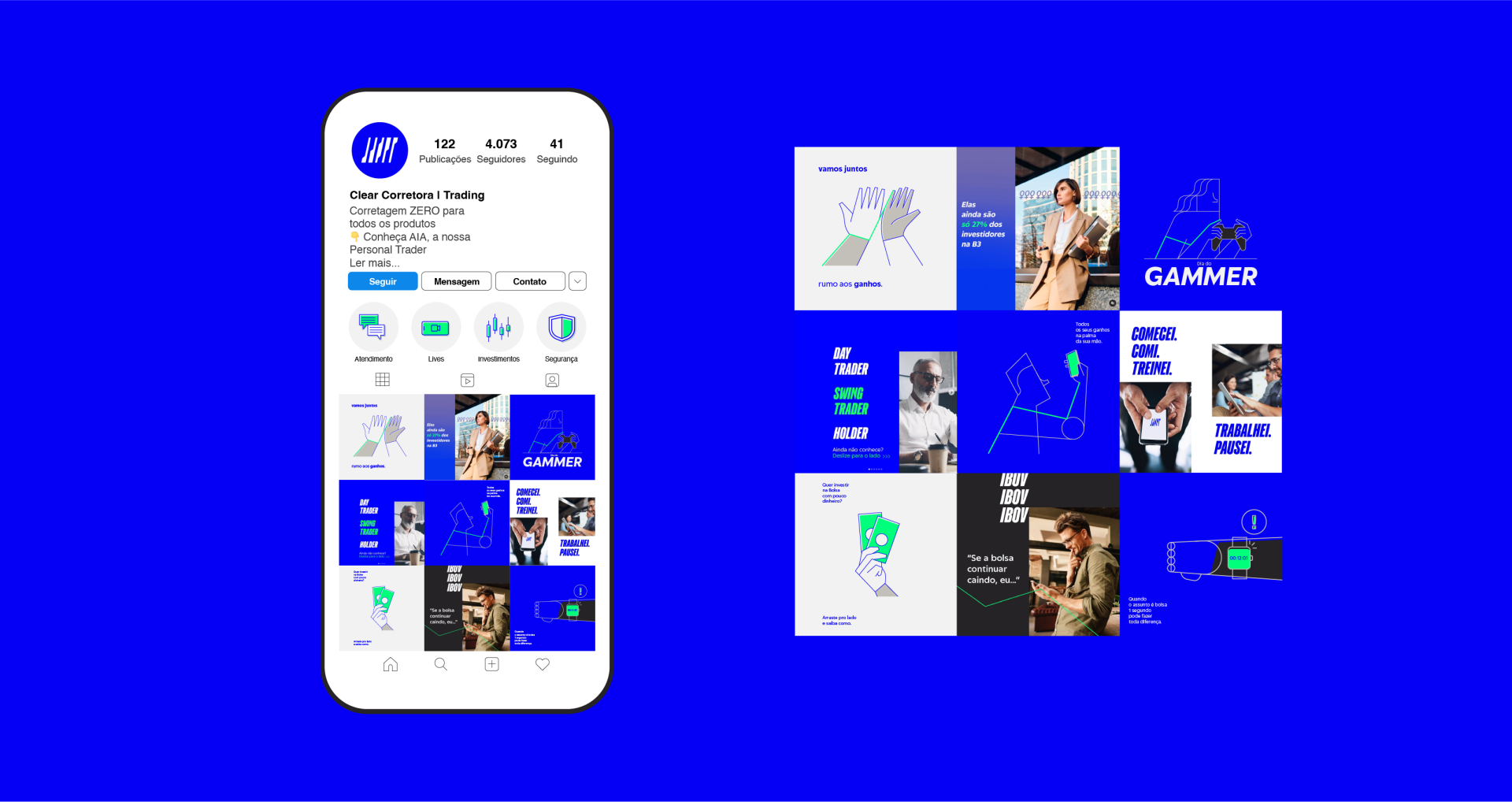 Clear Corretora, one of the brands of XP Investimentos, offers specialized tools for traders of all profiles. To support the visual identity created by Tatil, we developed a series of icons and elements for the brand's use. The illustrations feature a minimalist and bold visual that breaks away from the usual market patterns and becomes another differential of the brand.