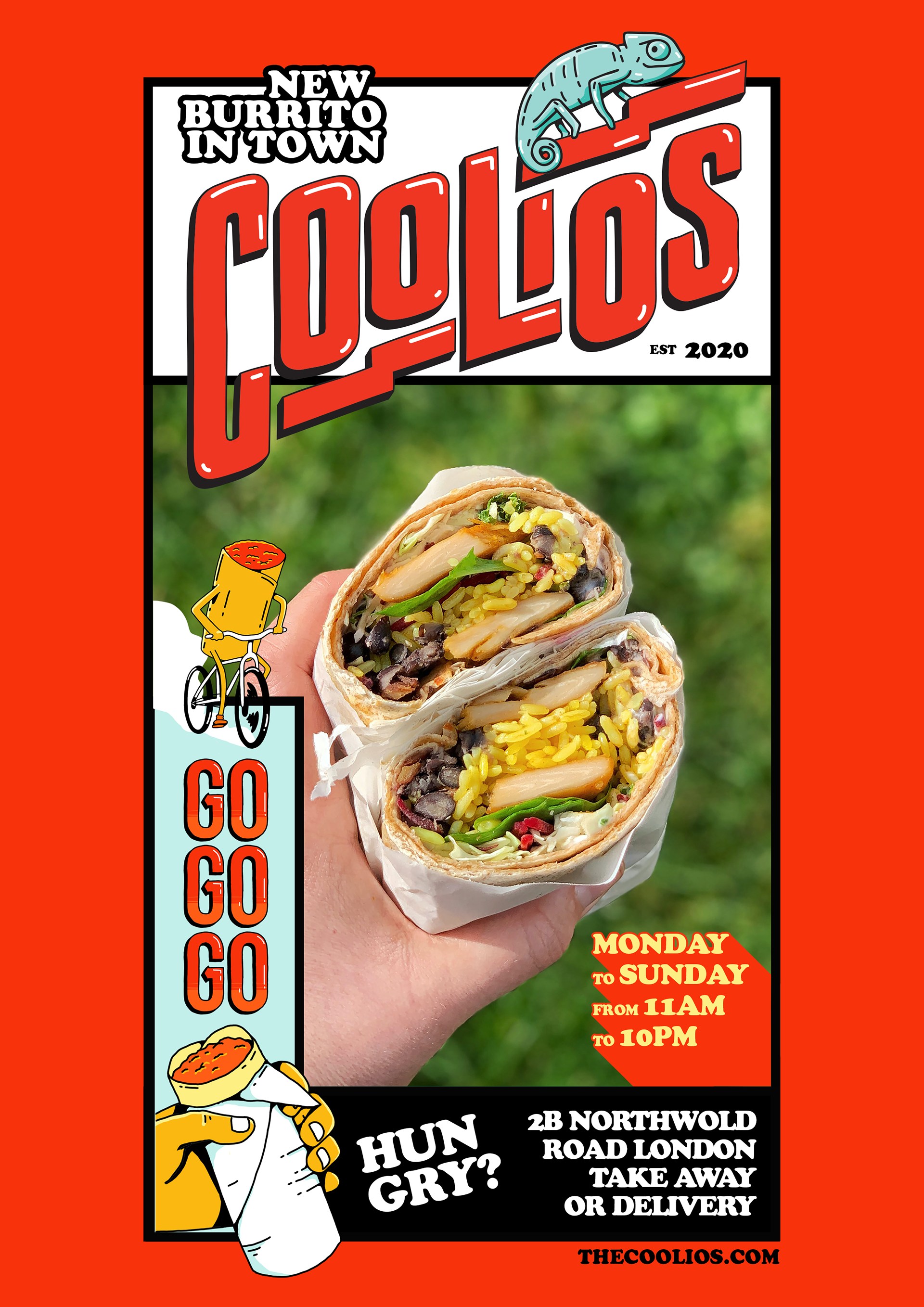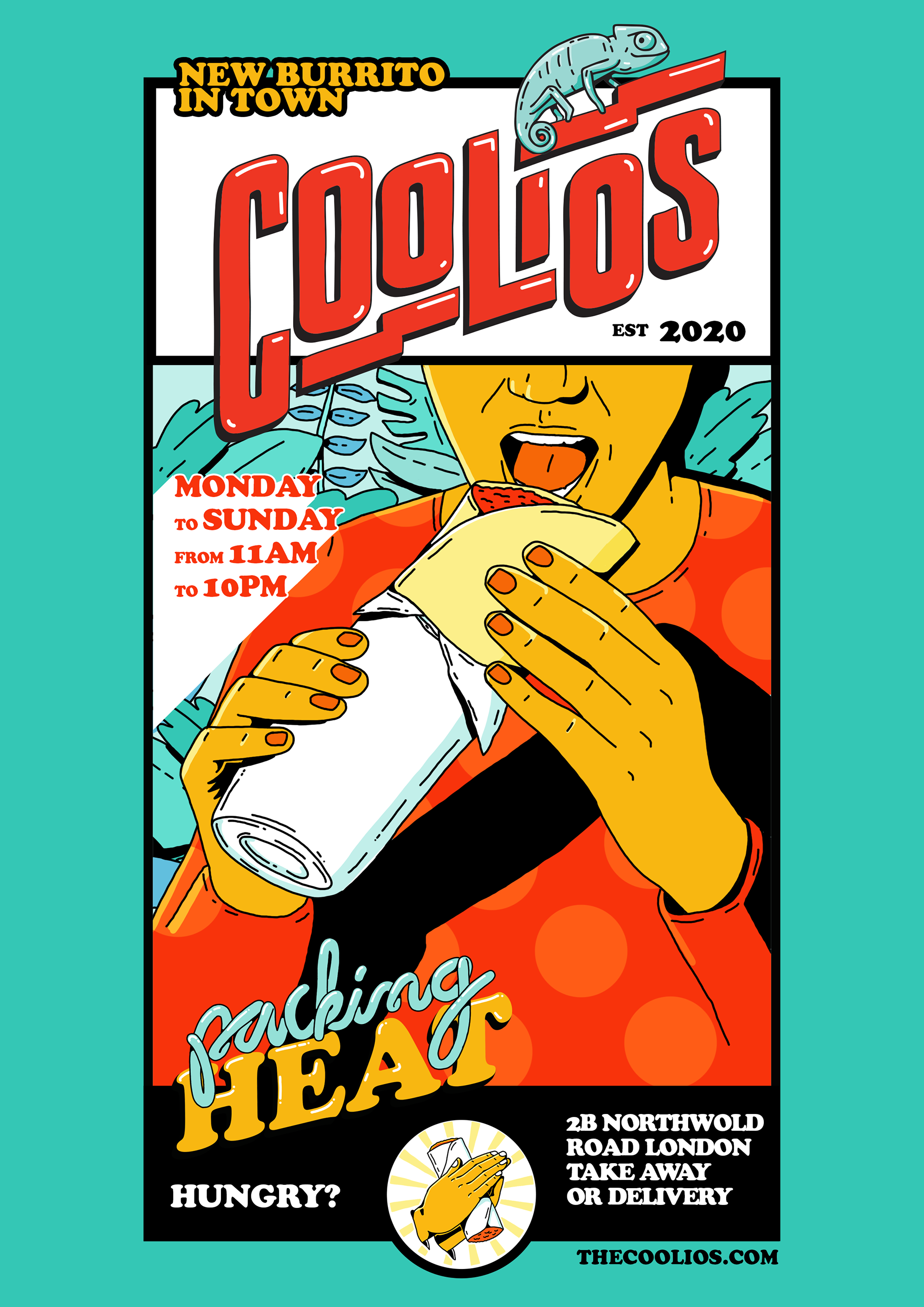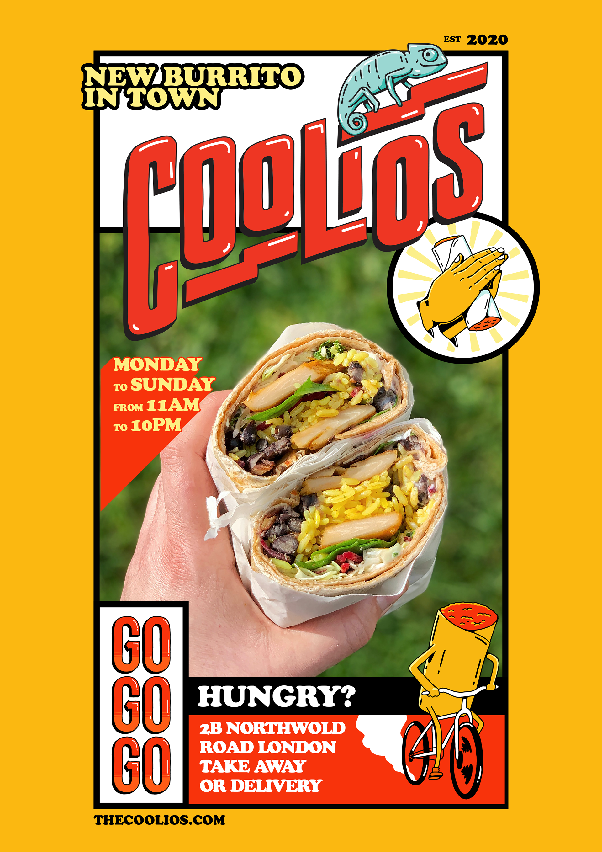 We created a young and fun visual identity for Coolios, a Burrito restaurant located in the Hackney neighborhood in the city of London / United Kingdom. Focused on the delivery and takeout system, we created a language that easily connects with its audience, full of illustrations and fun letterings that help convey the spirit of the brand.