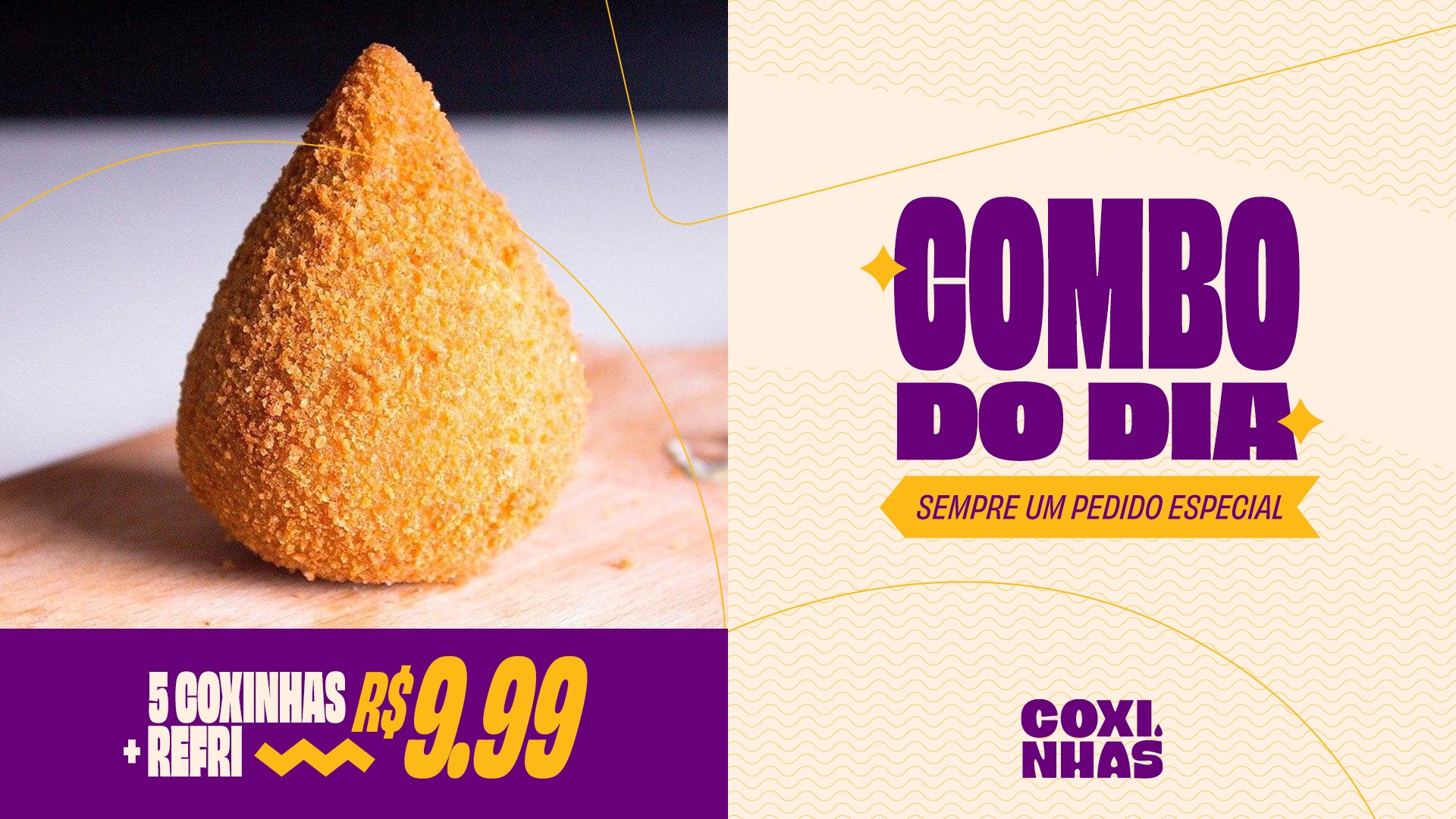 Coxinhas is a tasty and vibrant brand. Its idea is to offer customers a delicious, easy-to-eat, and ready-to-go product. We created a complete visual identity for this new brand specializing in Brazil's most beloved fried snack, coxinhas.