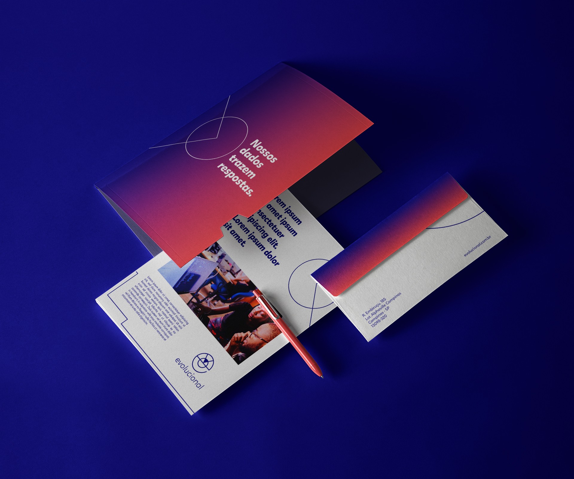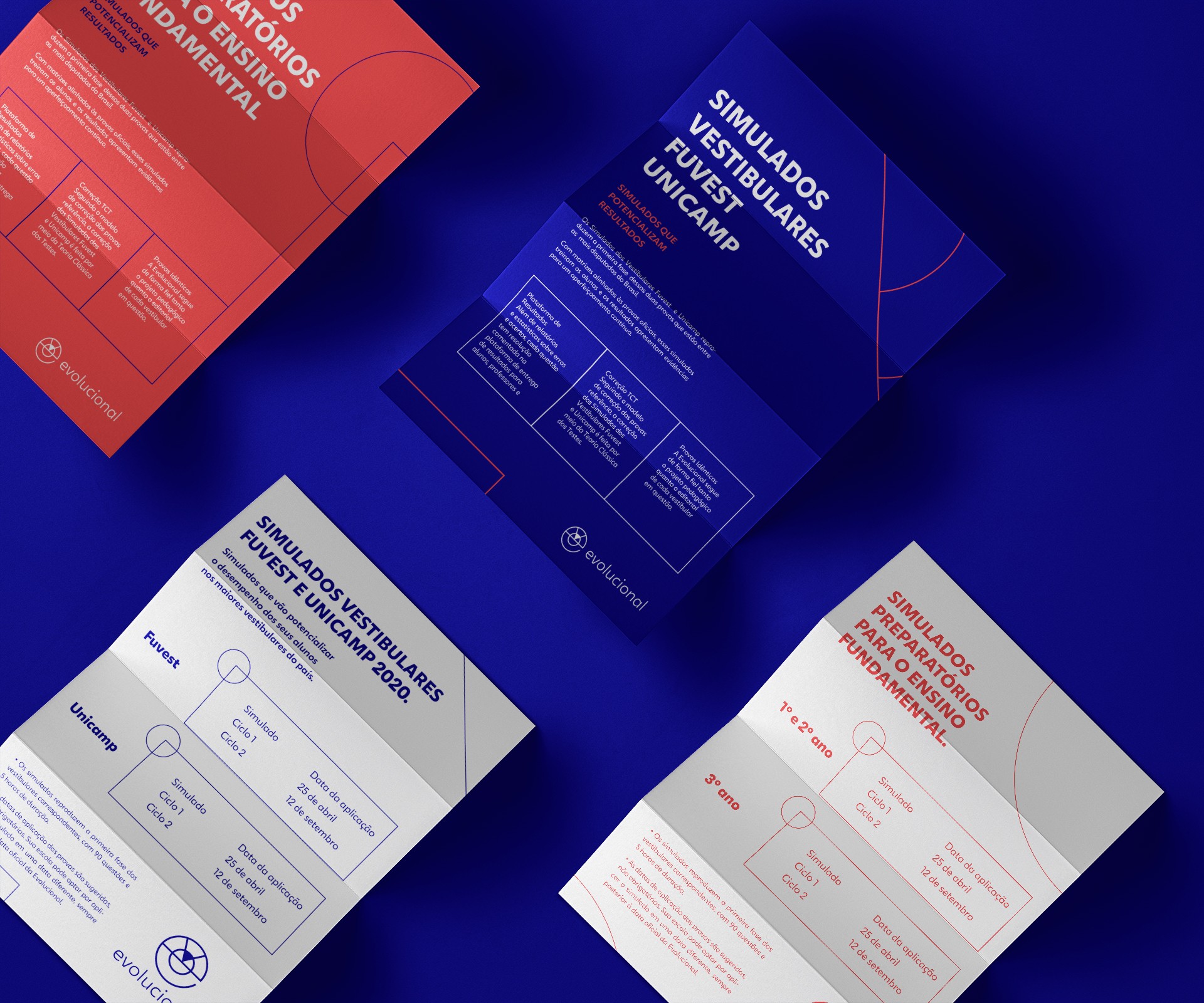 We were responsible for creating the new visual identity for the brand, transforming its entire graphic universe in connection with the technological scenario in which the company is established. Evolucional is now much more than a company that provides simulated tests to high schools. Due to its data analysis development, it can now make a deep and accurate reading of the strengths and weaknesses of a school's teaching. From this point, we brought the idea of a radar that seeks to guide educators in improving their teaching and bringing the best to their students.
