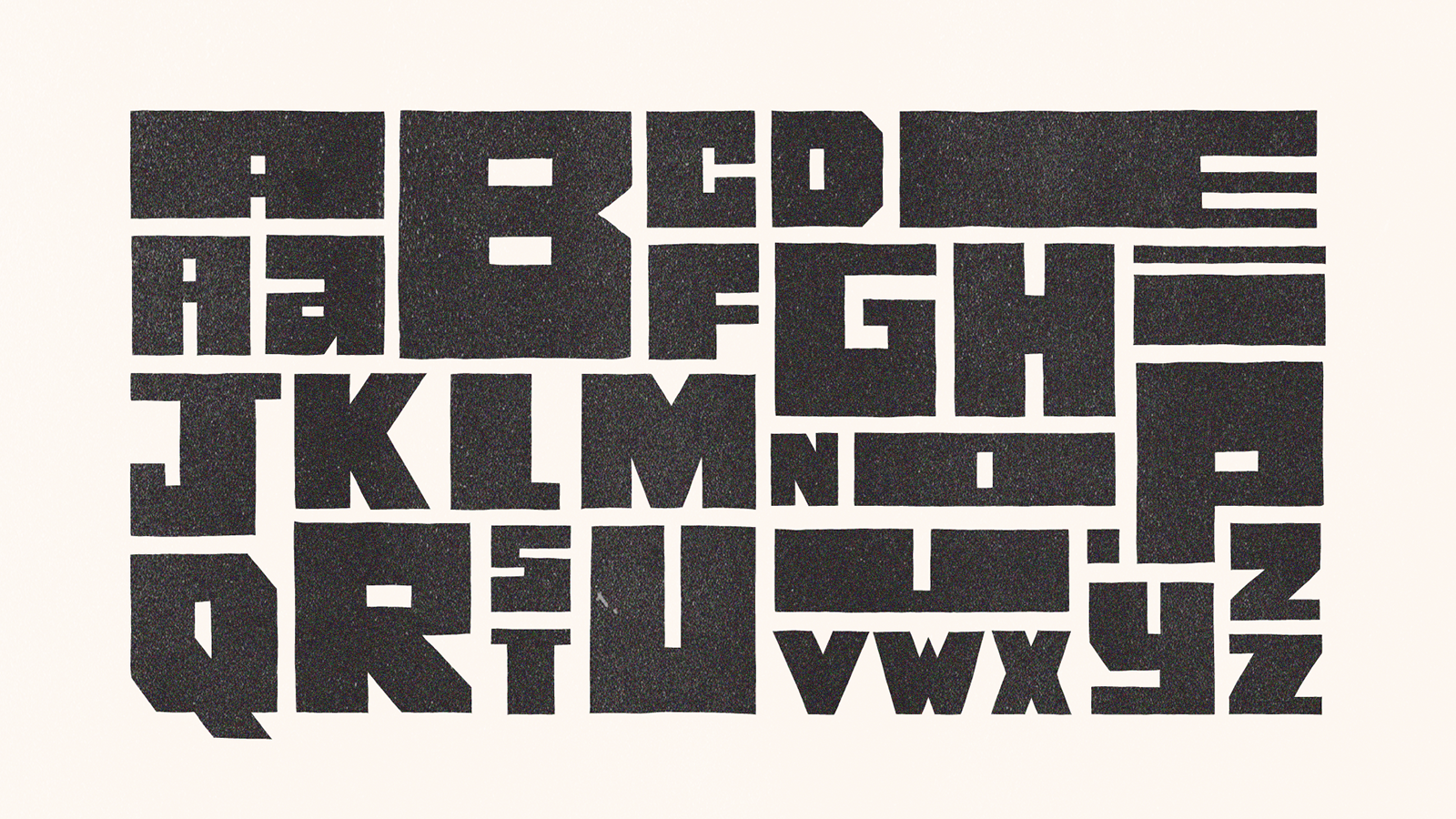 A ideia geral foi mostrar em um projeto uma das coisas que guiam o pensamento criativo do estúdio: a versatilidade de nos adaptarmos. Ela se encaixa e preenche os espaços, dando peso e presença para os layouts. Todas as vogais possuem ligaduras que são versões estendidas das letras. Nos inspiramos em formas vincadas e duras, quase como se as letras tivessem sido talhadas na madeira para virar uma xilogravura.