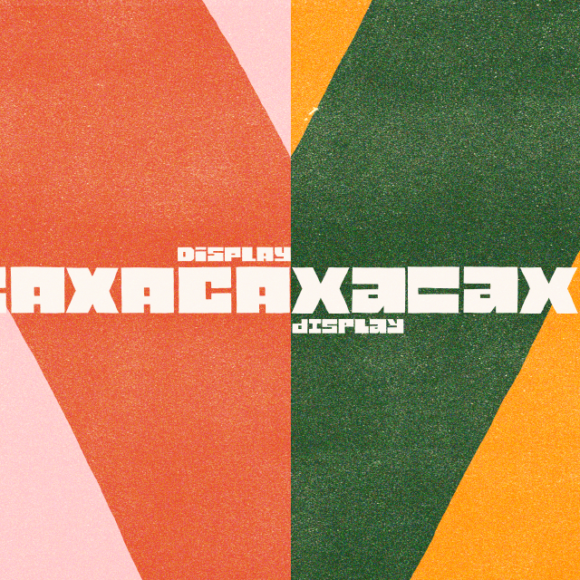 O próprio nome já diz: a Caxa Display é uma fonte display com legibilidade bem duvidosa, composta por caixa baixa e alta, e com algumas propriedades que ajudam as letras a se encaixarem.
