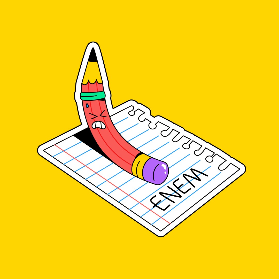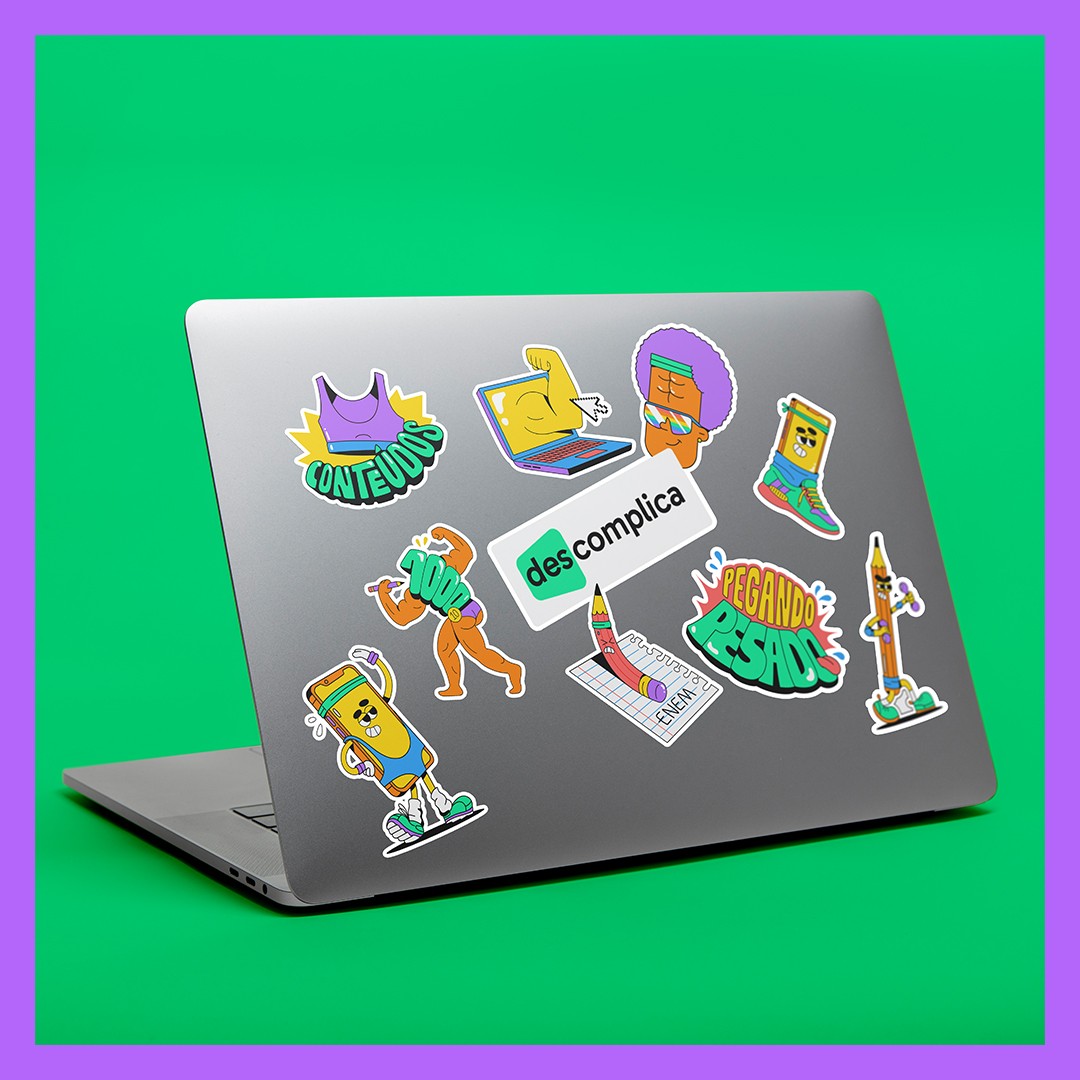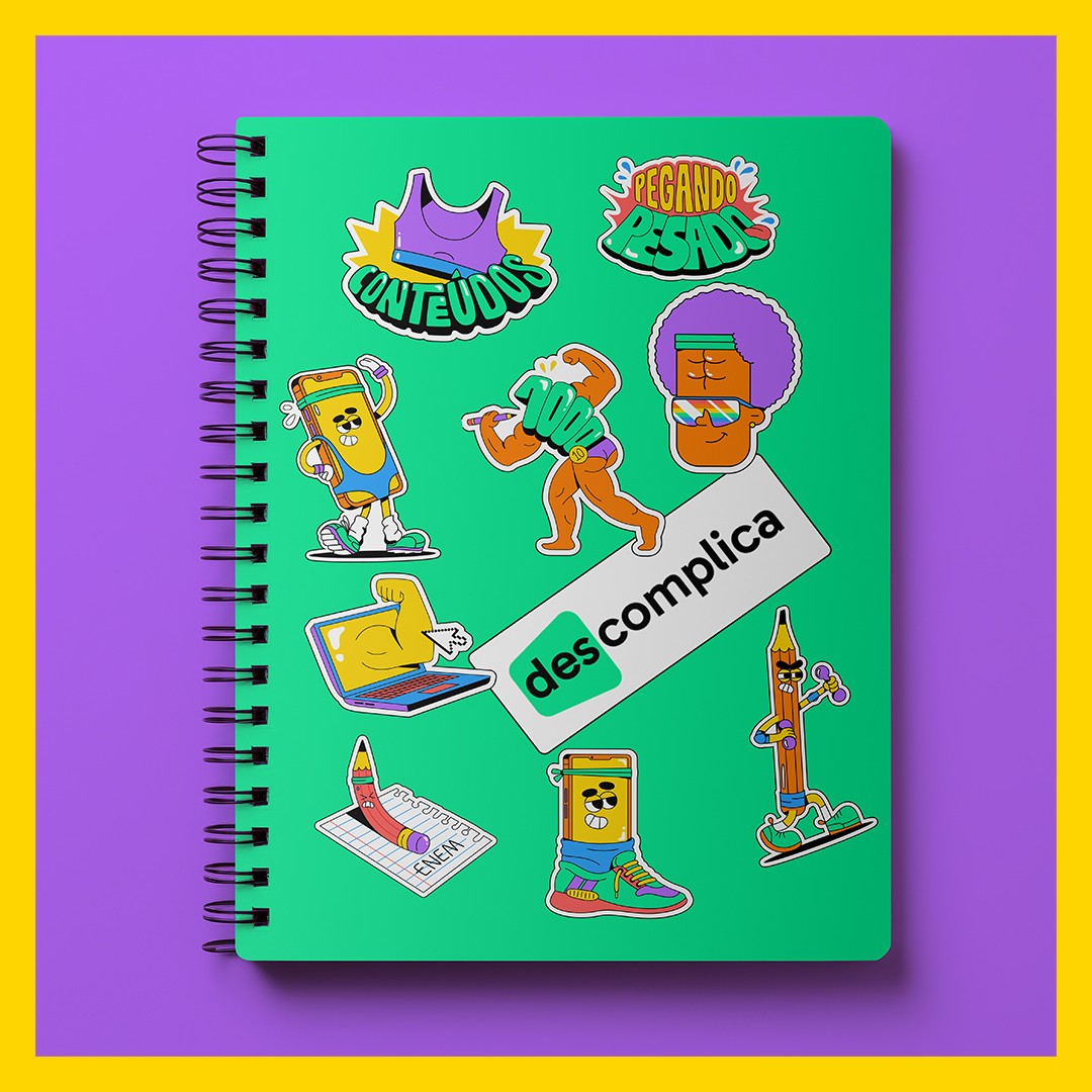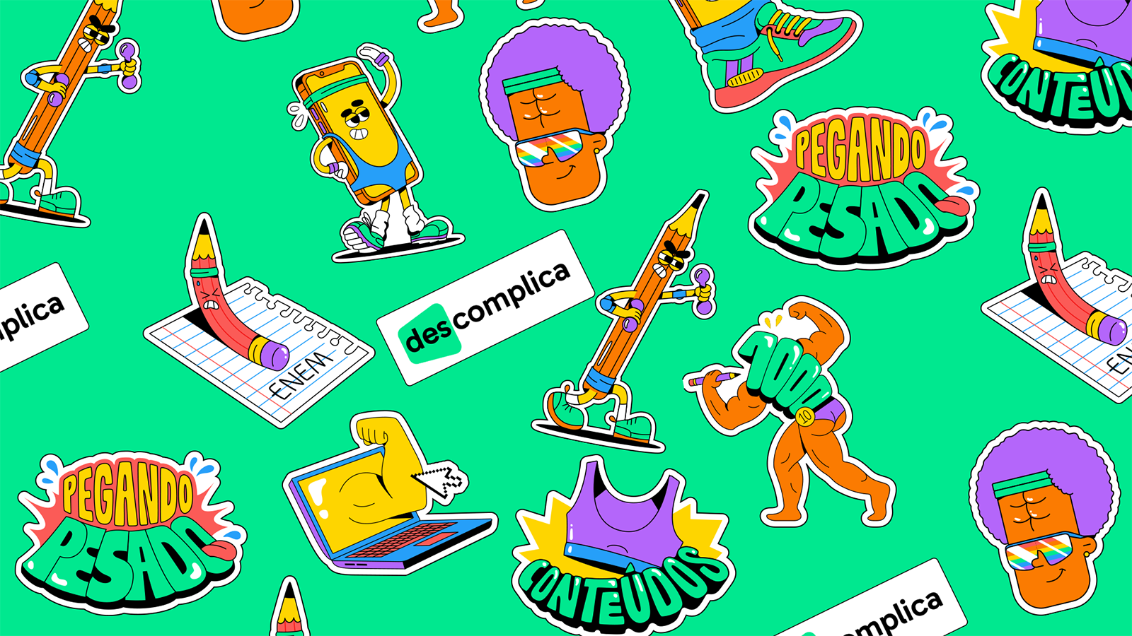 Série de adesivos ilustrados que criamos para a Descomplica, uma plataforma online de aulas de reforço para estudantes do ensino médio, graduação e pós-graduação. Desenvolvemos ilustrações para o período pré-Enem com a ideia de ajudar a engajar estudantes que precisam de apoio nessa reta final. As ilustrações fazem referência a treinos de atividade física com o estudo, trazendo um tom humorístico e dando leveza a um período que é tão estressante na vida de quem vai prestar esse tipo de exame.