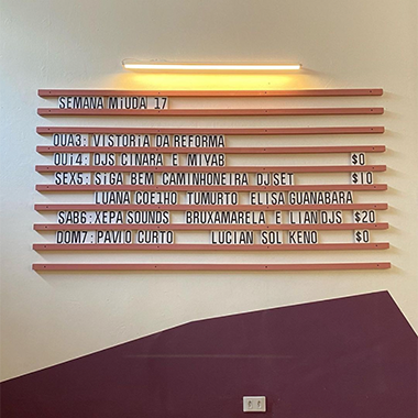 Para criar a identidade do bar, nos inspiramos em grandes projetos da cidade que se propõe a ser uma arquitetura da liberdade, lugares que convidam as pessoas a ocupa-lo e se manifestar livremente. Sem impor algum controle ali.