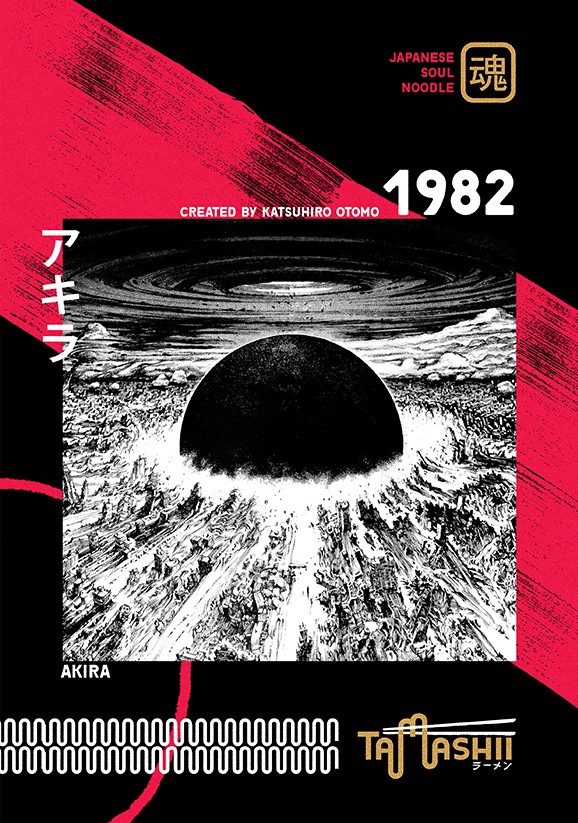Com o objetivo de transmitir a atmosfera autêntica do Japão, o design da identidade visual do Tamashii Ramen inclui elementos tradicionais japoneses como o uso de cores vivas e elementos gráficos inspirados na arte japonesa, como o "hanko" (carimbo tradicional japonês) e o "sumi-e" (técnica de pintura com tinta preta). Misturamos a esses elementos tradicionais ícones da cultura Pop de animês e mangás, criando uma atmosfera bem particular para a casa.