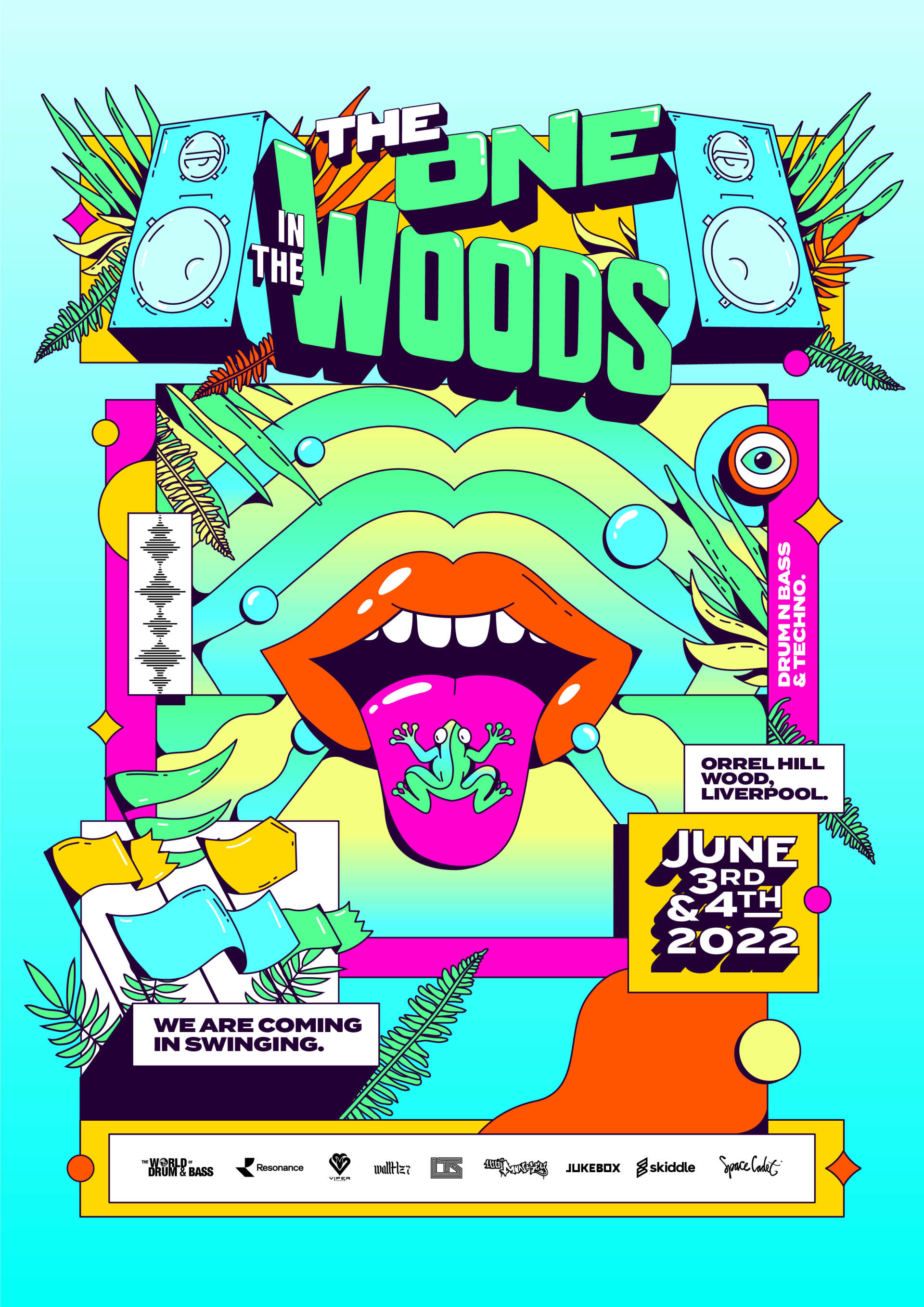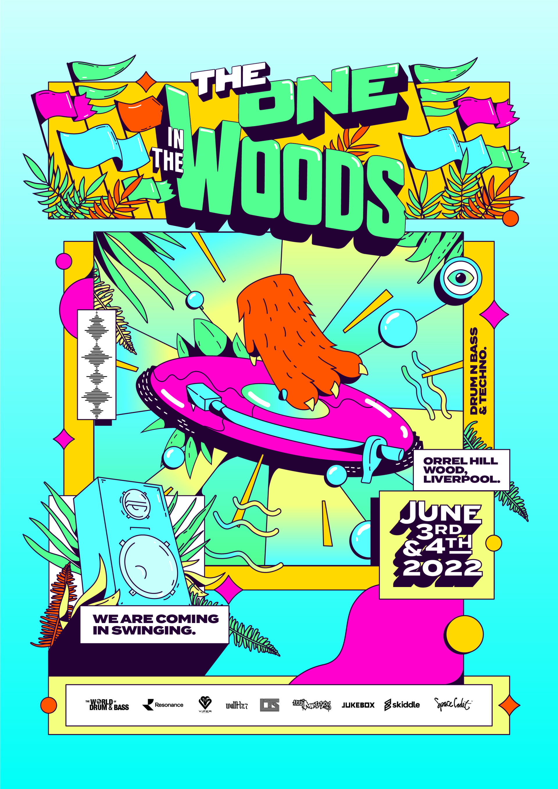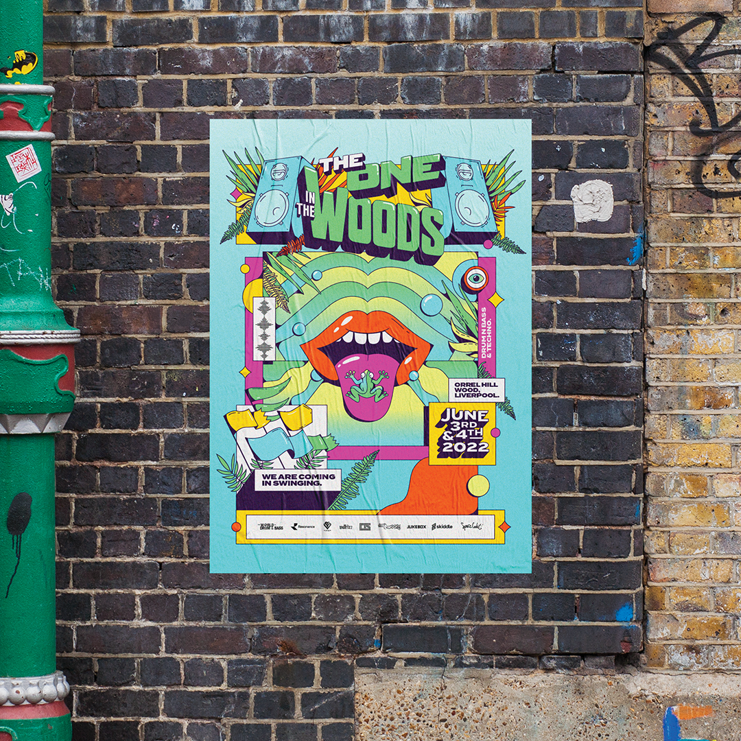 Criamos a identidade visual do festival The One in The Woods, um festival de música eletrônica que acontece todos os anos em Liverpool, no Reino Unido, durante o verão europeu. Para enfatizar toda a energia e diversão do festival, optamos por usar ilustrações vetoriais, que ajudaram a dar um toque memorável ao evento. Essas ilustrações trouxeram um tom de humor e alegria, com cores vibrantes e traços bem definidos, procurando facilitar a comunicação e a leitura das informações.