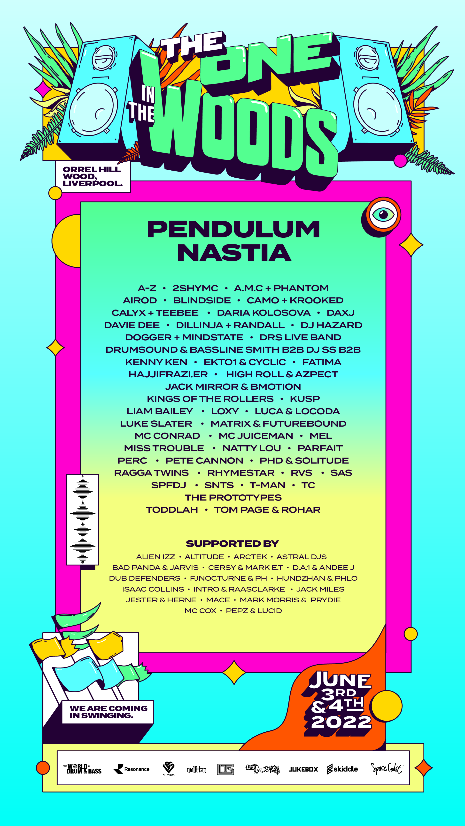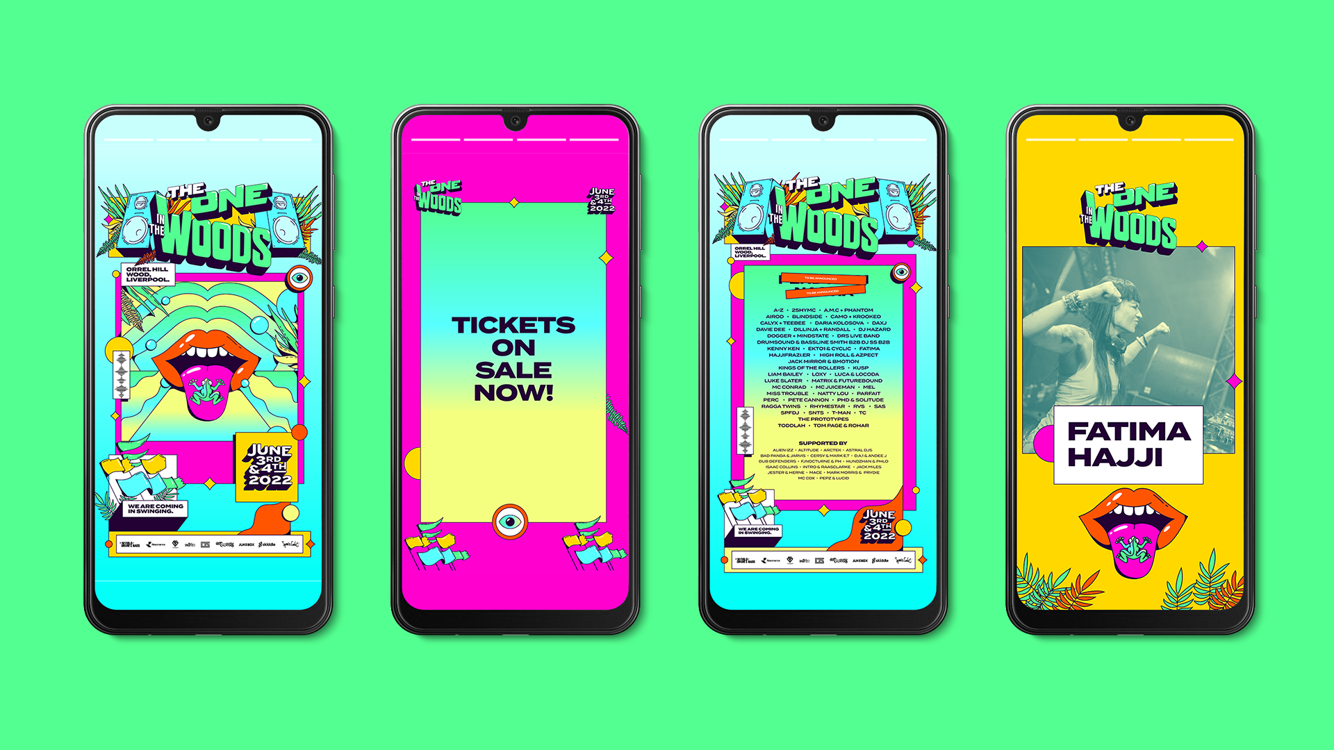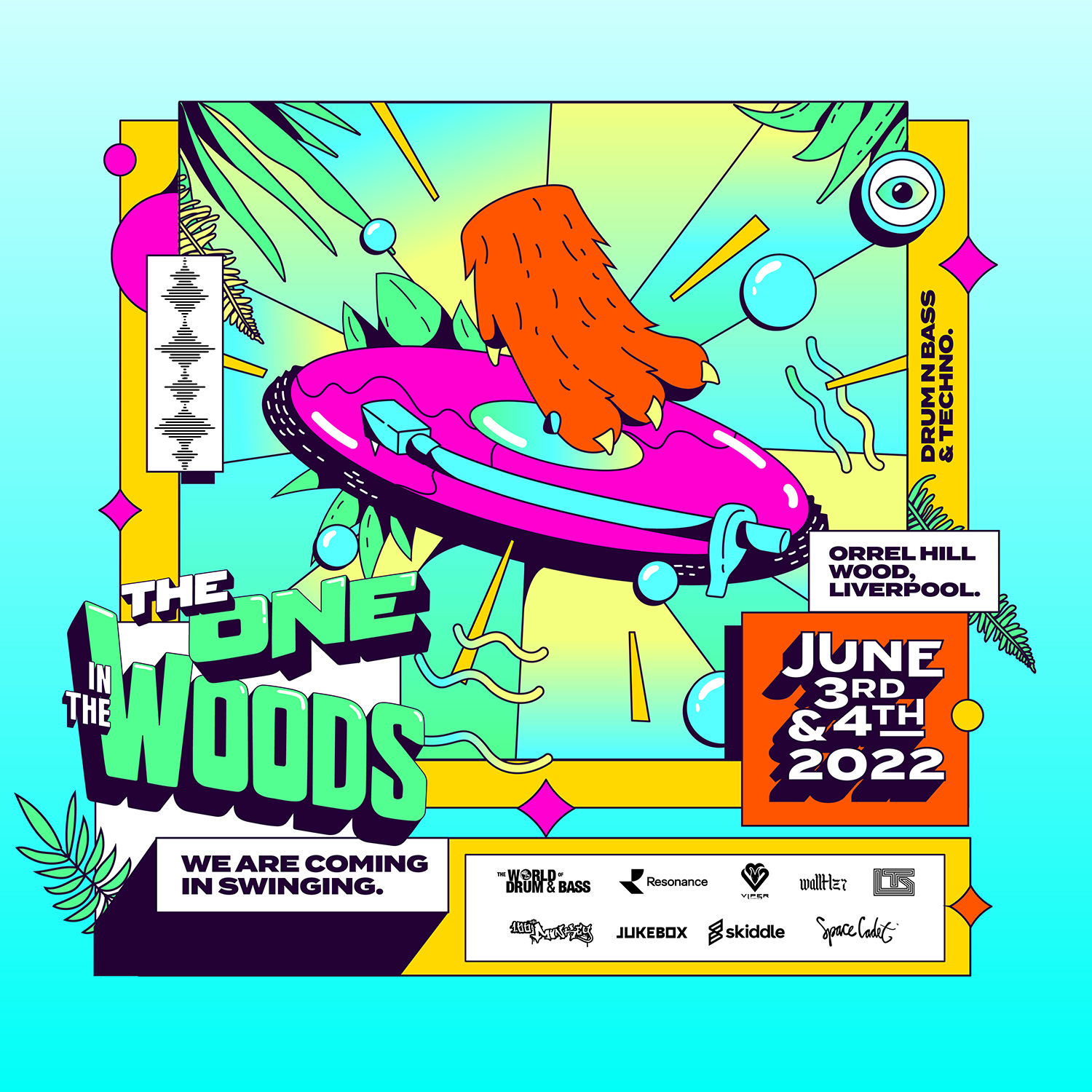 Criamos a identidade visual do festival The One in The Woods, um festival de música eletrônica que acontece todos os anos em Liverpool, no Reino Unido, durante o verão europeu. Para enfatizar toda a energia e diversão do festival, optamos por usar ilustrações vetoriais, que ajudaram a dar um toque memorável ao evento. Essas ilustrações trouxeram um tom de humor e alegria, com cores vibrantes e traços bem definidos, procurando facilitar a comunicação e a leitura das informações.